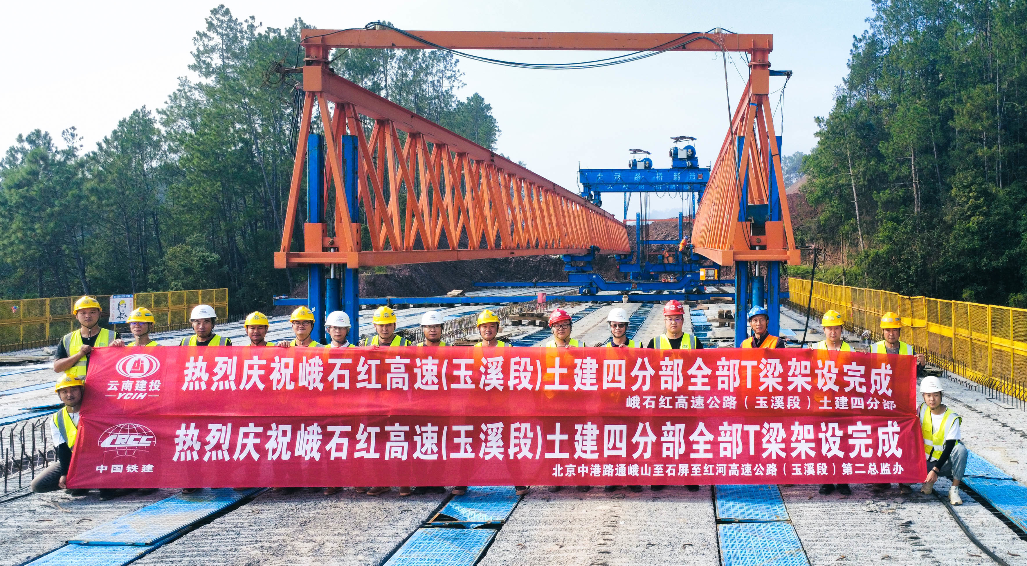 峨石紅高速(玉溪段)項目土建四分部T梁全部成功架設(shè)完成